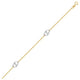 14k Yellow Gold Cable Anklet with Round Multi Tone Stations, size 10''