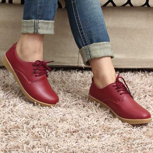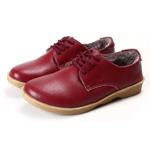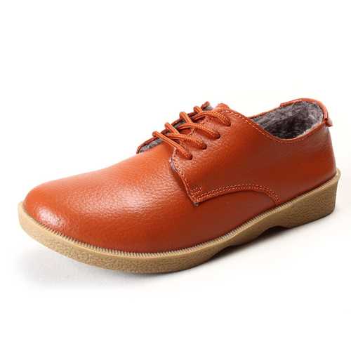 Brand:NODescription:1.Shoe Type: Flats2.Gender: Female3.Season: Winter, Autumn,4.Occasion: Casual5.Toe: Round Toe6.Closure Type:Lace-Up7.Heel Height: 3cm8.Platform Height: 2cm9.Color: Black, Wine Red, Orange, YellowMaterial:Upper Material: Top Split LeatherOutsole Material: RubberSize Chart: