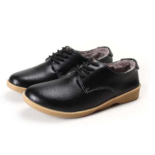Winter Women Plush Cotton Shoes Keep Warm Casual Outdoor Leather Flats Loafers