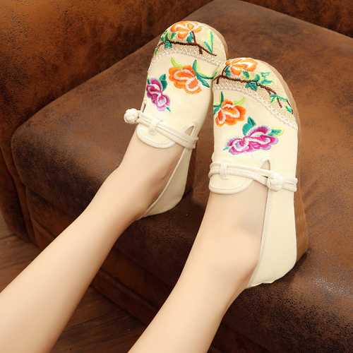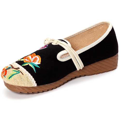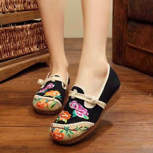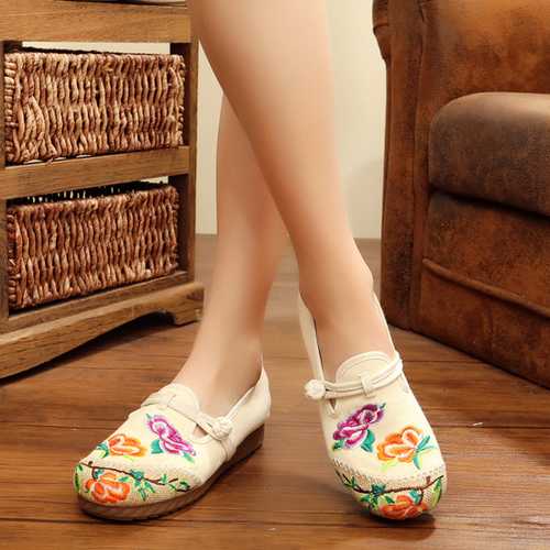 Flower Chinese Embroidered Casual Round Toe Buckle Flat Shoes