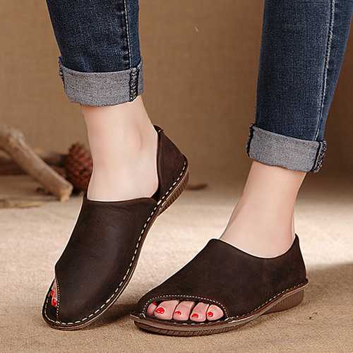 Brand: SOCOFYDescription:1. Shoe Type: Flat Shoes2. Gender: Women3. Season: Spring, Summer|, Autumn4. Occasion: Casual, Daily5. Toe: Round Toe6. Closure Type: Slip On7. Heel Height: 3cm8. Platform Height: 2cm9. Color: Brown, CoffeeMaterial:Upper Material:Genuine Leather Outsole Material: Rubber