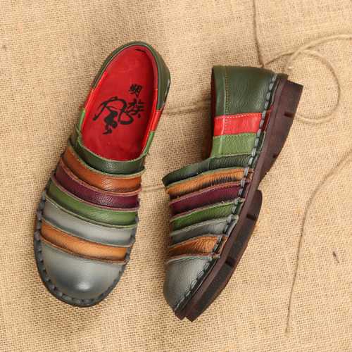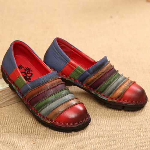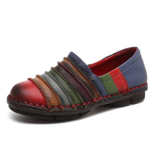 Brand: SOCOFYDescription:1. Shoe Type: Flat Shoes2. Gender: Women3. Season: Spring, Summer4. Occasion: Casual, Daily5. Toe: Round Toe6. Closure Type: Slip On 7. Heel Height: 3cm8. Platform Height: 2cm9. Color: Black,Gray,RedMaterial:Upper Material: Genuine LeatherOutsole Material: Rubber