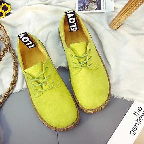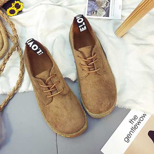 US Size 5-11 Women Lace Up Casual Round Toe Comfortable Flat Loafers