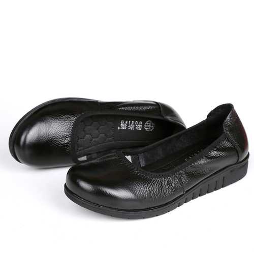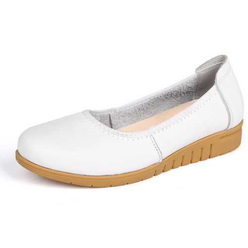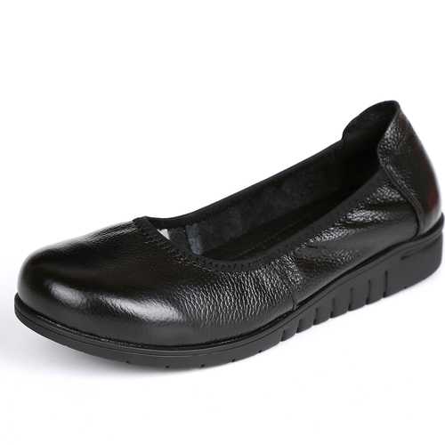 Brand: SOCOFYDescription:1. Shoe Type: Flat Shoes2. Gender: Women3. Season: Spring, Summer4. Occasion: Casual 5. Toe: Round Toe6. Closure Type: Slip On7. Heel Height: 3cm8. Color: Black,White,Blue Material:Upper Material: Genuine LeatherOutsole Material: Rubber
