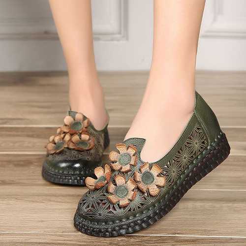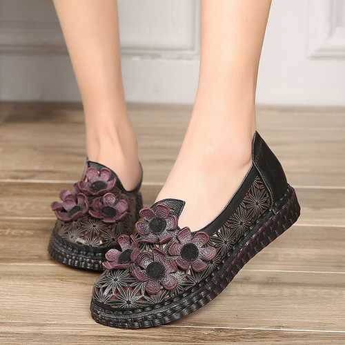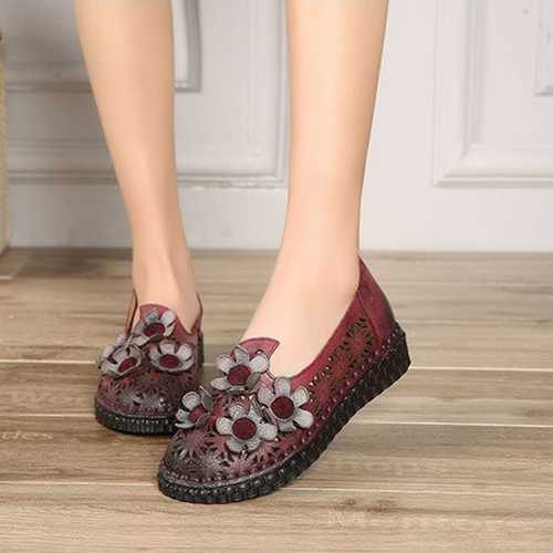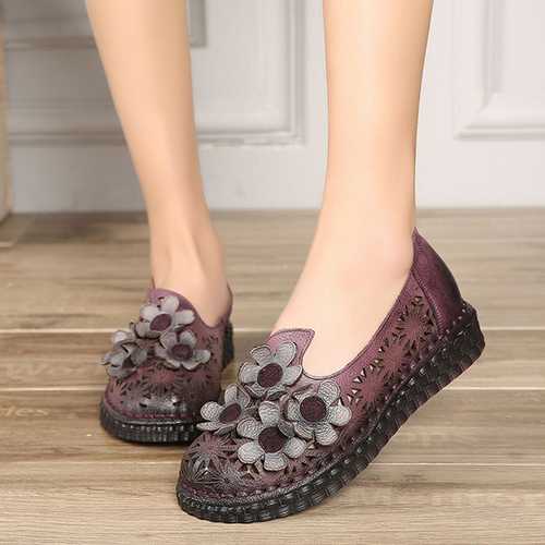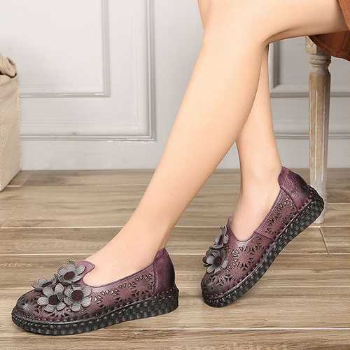 Brand: SOCOFYDescription:1. Shoe Type: Flats2. Gender: Women3. Season: Spring, Summer, Autumn4. Occasion: Casual5. Toe: Round Toe6. Closure Type: Slip-On7. Heel Height: 2cm8. Platform Height: 2cm9. Color: Black, Green, Purple, Wine Red, KhakiMaterial:Upper Material: Genuine LeatherOutsole Material: Rubber