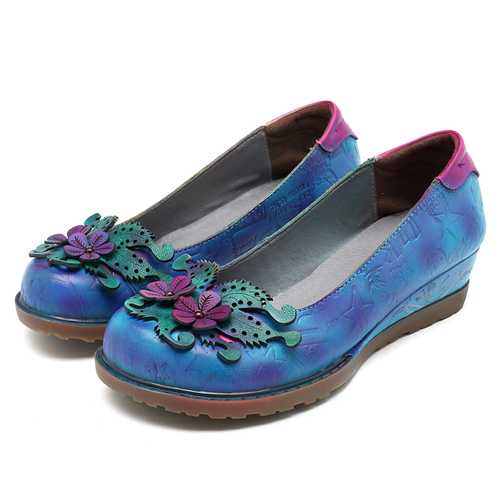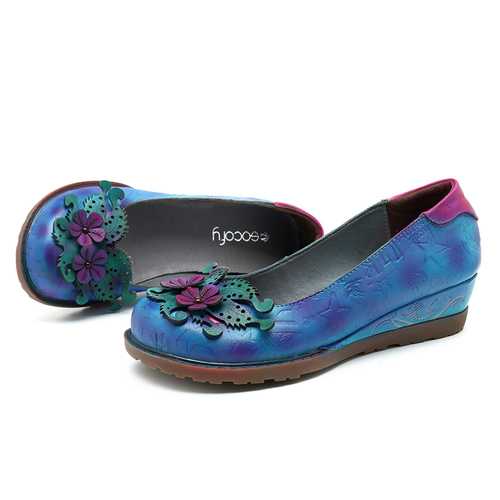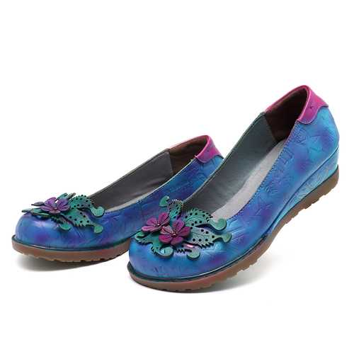 SOCOFY Handmade Leather Retro Casual Flats Loafers