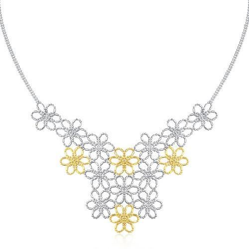 Beaded clusters of floral motifs in sterling silver stand out in this statement necklace with accenting 14k yellow gold flowers. Measuring a length of 18 inches, the floral arrangements are suspended from a double beaded chain.Size 18''Rhodium Polish: NoLine Item Type: SilverMetal Name: Yellow Gold & Sterling SilverMetal Content: 925...