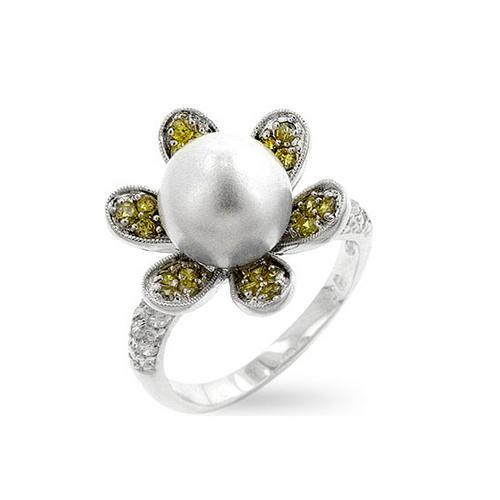 Ivy is a floral motif pearl ring. This ring is designed with a 10mm pearl and cubic zirconia accents along its petals and shoulders. The pearl alone will illuminate your skin tone and brighten your wardrobe. Genuine Rhodium Plating is achieved using an electroplating process that coats the item with...