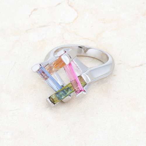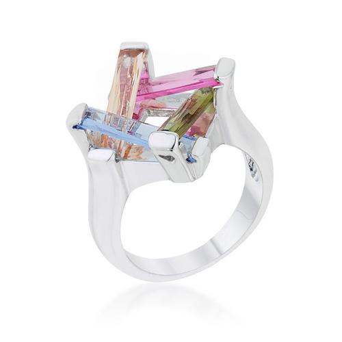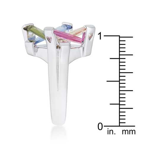 Myra Ring 10ct Multicolor CZ Rhodium Cocktail Ring