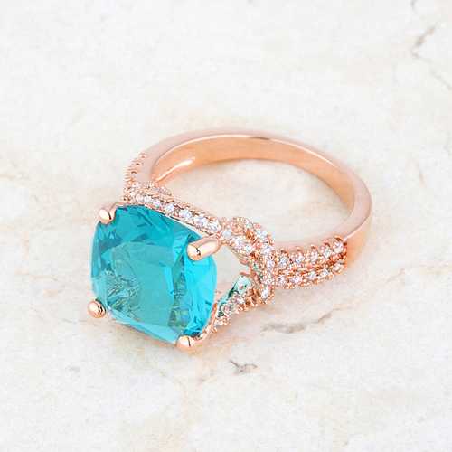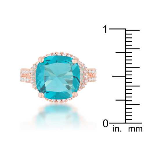 Charlene 6.2ct Aqua CZ Rose Gold Classic Statement Ring