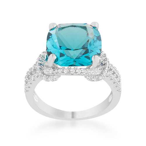 Charlene 6.2ct Aqua CZ Rhodium Classic Statement Ring