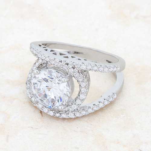 Clear stones accent the silhouette of a contemporary statement ring. A must-have piece to take your look up a notch.Base Metal: Lead Free Alloy (brass)Style: , Setting Type: ProngsMaterials: , Stone Cut: RoundPlating Color: RhodiumRing Band Width: 3.3mmStone Size: 9 Mm