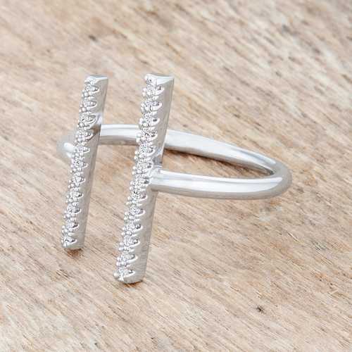 Sharna 12ct CZ Rhodium Parallel Contemporary Ring