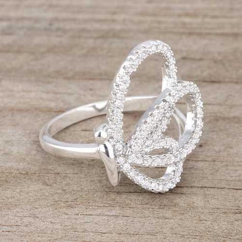 Small clear stones accent a contemporary butterfly style for a feminine and modern look. A classically fun statement piece.Base Metal: Lead Free Alloy (brass)Style: , Setting Type: PaveMaterials: , Stone Cut: RoundPlating Color: RhodiumRing Band Width: 2mmStone Size: 1 Mm