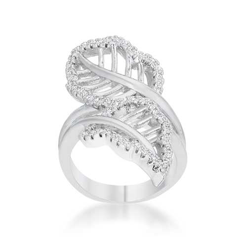 Lina 0.4ct CZ Rhodium Leaf Wrap Ring