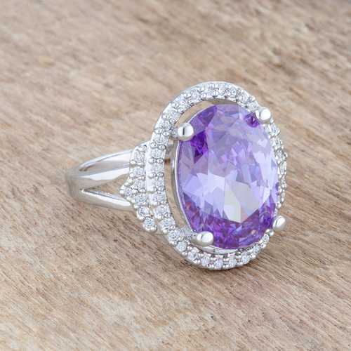 An elegant solitary amethyst stone surrounded by clear smaller stones takes center stage in this classic cocktail ring.Base Metal: Lead Free Alloy (brass)Style: , Setting Type: PaveMaterials: , Stone Cut: RoundPlating Color: RhodiumRing Band Width: 2 MmStone Size: 1.15 Mm