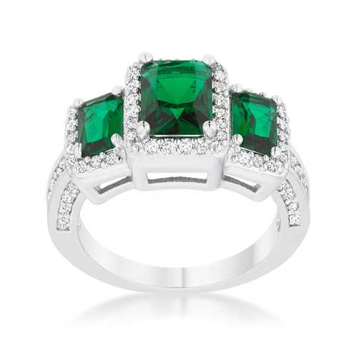Rita 2.3ct Emerald CZ Rhodium Classic Trio Ring