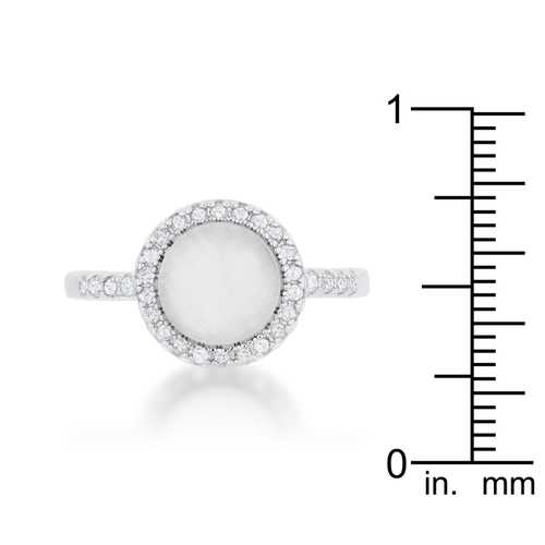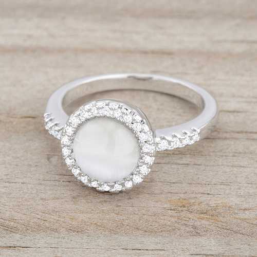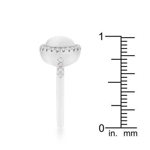 Small delicate set stones accent a round solitary white cat's eye stone in this femininely classic ring.Base Metal: Lead Free Alloy (brass)Style: , Setting Type: PaveMaterials: , Stone Cut: RoundColor: , Plating Color: RhodiumRing Band Width: 2mmStone Size: 1.3 Mm