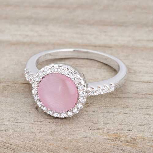 Small delicate set stones accent a round solitary pink cat's eye stone in this femininely classic ring.Base Metal: Lead Free Alloy (brass)Style: , Setting Type: PaveMaterials: , Stone Cut: RoundColor: , Plating Color: RhodiumRing Band Width: 2mmStone Size: 1.3 Mm