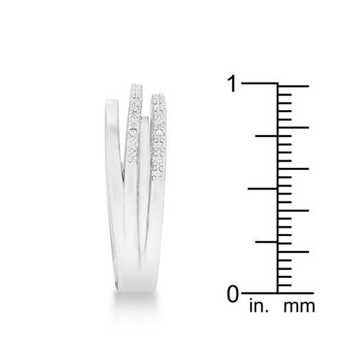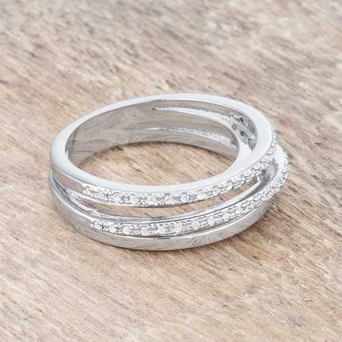 Clear stones accent a trip of bands in a unique classic band ring design.Base Metal: Lead Free Alloy (brass)Style: , Setting Type: PaveMaterials: , Stone Cut: RoundPlating Color: RhodiumRing Band Width: 5 MmStone Size: 1 Mm