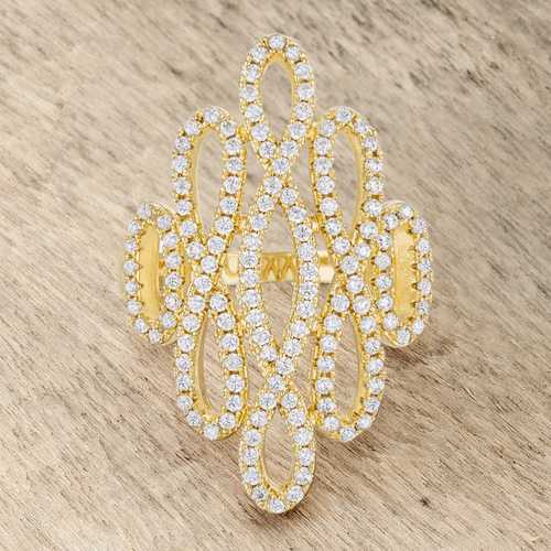 Small delicate set stones accent a delicate filigree design in this contemporary cocktail ring.Base Metal: Lead Free Alloy (brass)Style: , Setting Type: PaveMaterials: , Stone Cut: RoundColor: , Plating Color: GoldtoneRing Band Width: 2.75mmStone Size: 1.15 Mm