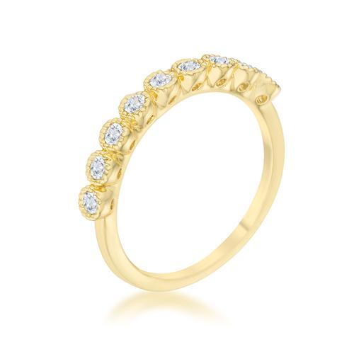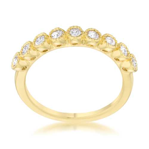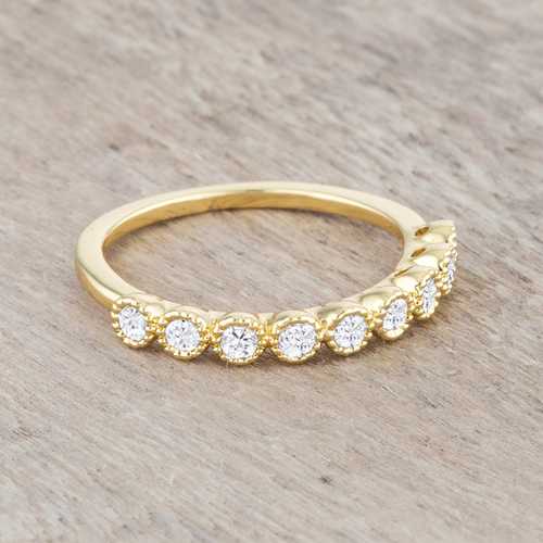 Small pave set stones accent the setting of a classic band ring for a delicate look.Base Metal: Lead Free Alloy (brass)Style: , Setting Type: BezelMaterials: , Stone Cut: RoundPlating Color: GoldtoneRing Band Width: 1.5 MmStone Size: 2 Mm