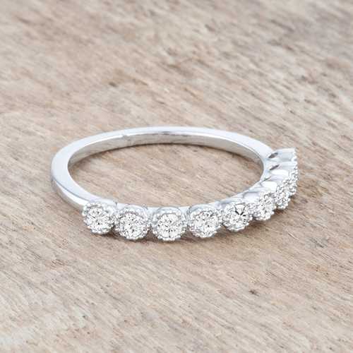 Small pave set stones accent the setting of a classic band ring for a delicate look.Base Metal: Lead Free Alloy (brass)Style: , Setting Type: BezelMaterials: , Stone Cut: RoundPlating Color: RhodiumRing Band Width: 1.5 MmStone Size: 2 Mm