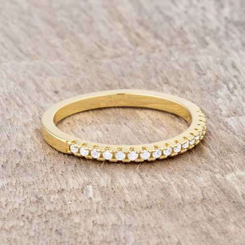 Clear stones accent the delicate band of this simple piece perfect for everyday wear.Base Metal: Lead Free Alloy (brass)Style: , Setting Type: ChannelMaterials: , Stone Cut: RoundColor: , Plating Color: GoldtoneRing Band Width: 2 MmStone Size: 1.15 Mm