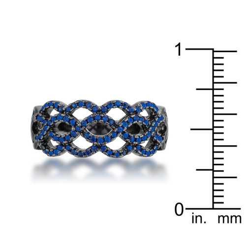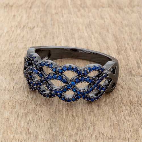 Small sapphire stones accent a wide twisted design in this bold cocktail ring.Base Metal: Lead Free Alloy (brass)Style: , Setting Type: PaveMaterials: , Stone Cut: RoundPlating Color: Gunmetal/hematiteRing Band Width: 2.5mmStone Size: 1mm