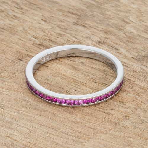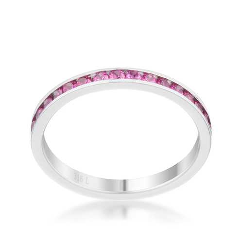 Small ruby stones come full circle in this simple and delicate eternity bandBase Metal: Stainless SteelStyle: , Setting Type: ChannelMaterials: , Stone Cut: RoundPlating Color: SilvertoneRing Band Width: 2 MmStone Size: 1.5 Mm