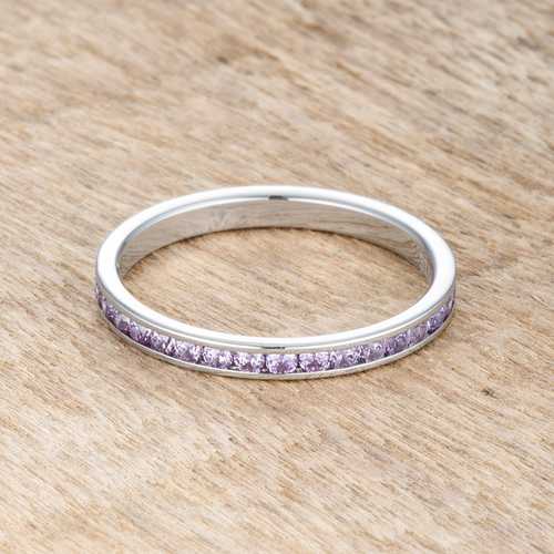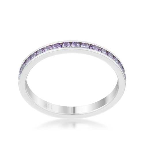Small lavender stones come full circle in this simple and delicate eternity bandBase Metal: Stainless SteelStyle: , Setting Type: ChannelMaterials: , Stone Cut: RoundPlating Color: SilvertoneRing Band Width: 2 MmStone Size: 1.5 Mm