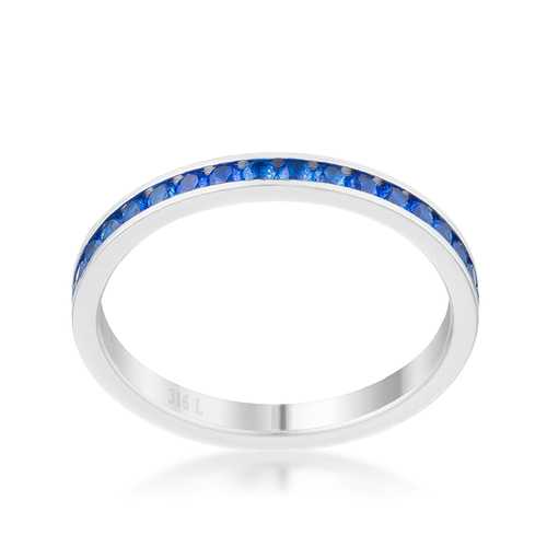 Small sapphire stones come full circle in this simple and delicate eternity bandBase Metal: Stainless SteelStyle: , Setting Type: ChannelMaterials: , Stone Cut: RoundPlating Color: SilvertoneRing Band Width: 2 MmStone Size: 1.5 Mm