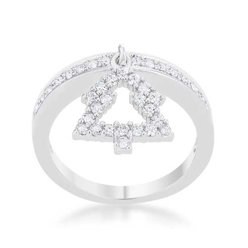 Christmas Tree 0.3ct CZ Rhodium Holiday Charm Ring