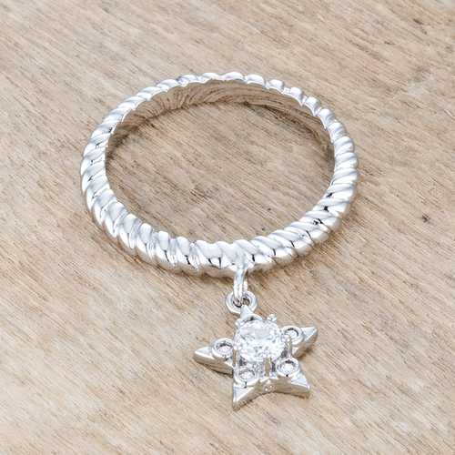 This ring is crafted with rhodium plating the same thing that gives white gold its incredible shine. With five round cubic zirconia accented points and a larger round cubic zirconia in the center the charm sparkles to add to the effect. This is the perfect gift for the star of your life!