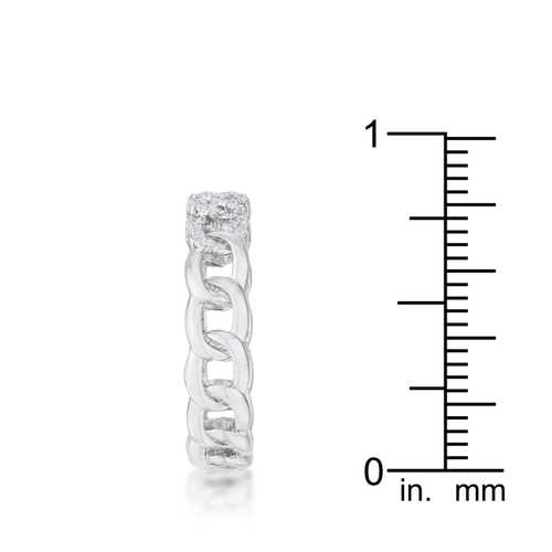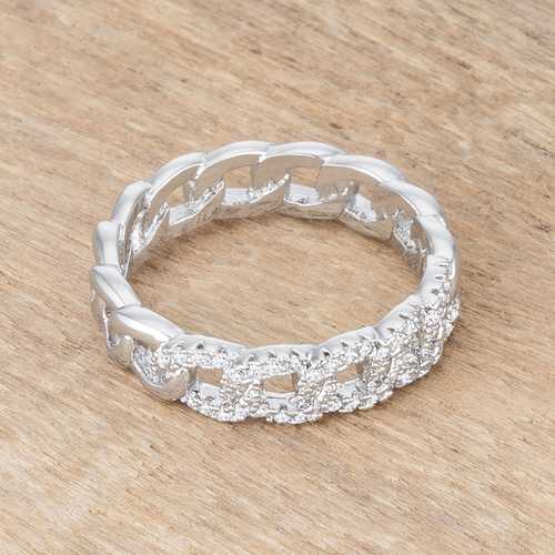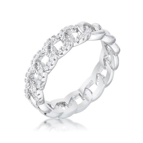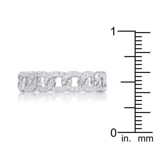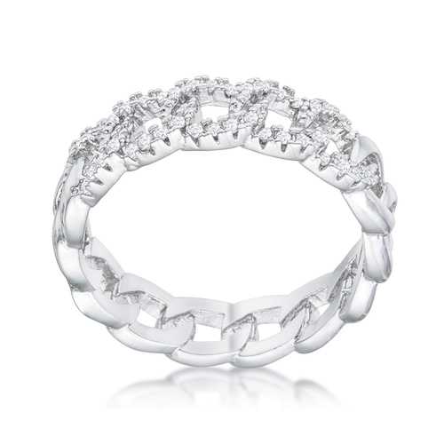 This stunning ring is crafted with rhodium plating the same metal that gives white gold its lustrous shine. The chain design is beautified by round cubic zirconia for an opulent yet elegant flare. This ring makes a beautiful statement on the finger of the one you love.