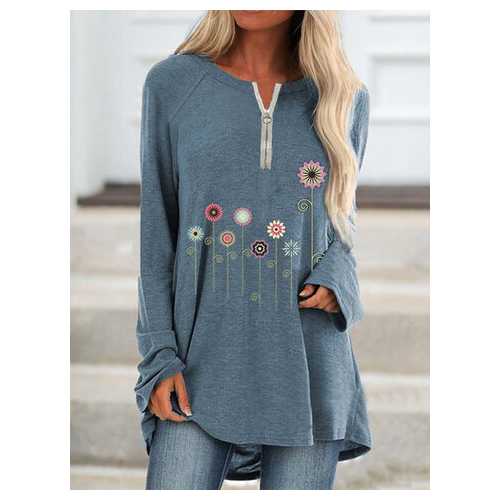 Print Flower Long Sleeve T-shirt