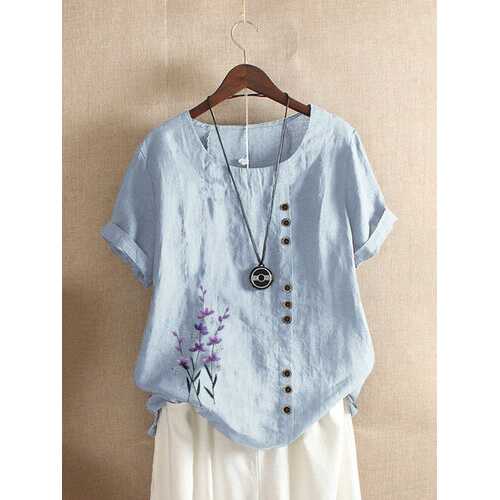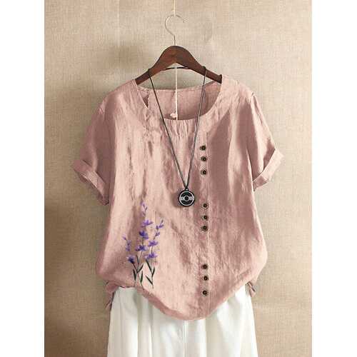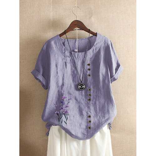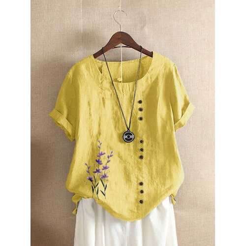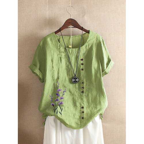 FABRIC: CottonSpecification :Customer Age: 45+ Years,36-45 YearsColor: Pink,Green,Yellow,Purple,Orange,Light BlueSize: M,L,XL,2XL,3XL,4XL,5XLMaterial: CottonClosure Type: OverheadPattern: Floral,EmbroiderySleeve Length: Short SleeveOccasion: Daily CasualNeckline: O-neckSeason: Summer Package included: 1*T-shirt
