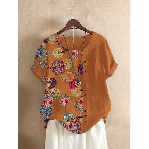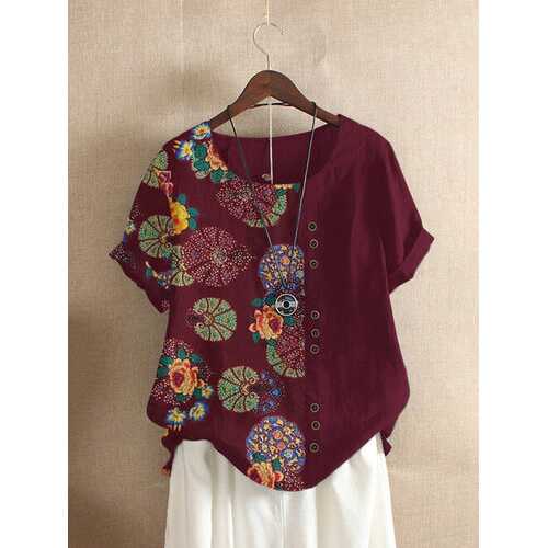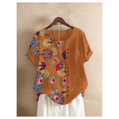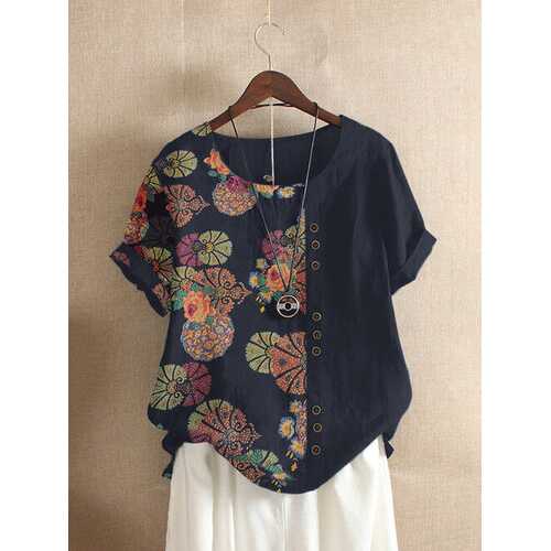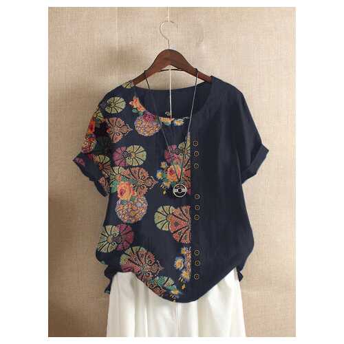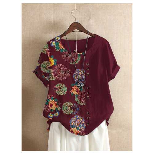 FABRIC: CottonSpecification :Customer Age: 45+ Years,36-45 YearsColor: Yellow,Navy,Wine RedSize: S,M,L,XL,2XL,3XL,4XLMaterial: CottonClosure Type: OverheadPattern: Printed,PatchworkSleeve Length: Short SleeveOccasion: Daily CasualNeckline: O-neckSeason: Summer Package included: 1*T-shirt