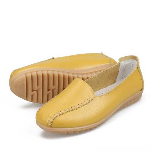 Brand: NoDescription:1. Shoe Type: Flats2. Gender: Women3. Season: Spring, Summer, Autumn, 4. Occasion: Casual, 5. Toe: Round Toe6. Closure Type: Slip-0n7. Heel Height: 1cm8. Platform Height: 1cm9. Color: Black, Red, Yellow, BlackMaterial:Upper Material: Cow Split LeatherOutsole Material: Rubber