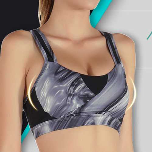 Women Cozy Shockproof Wireless Waves Printing Breathable Yoga Sport Vest Bra