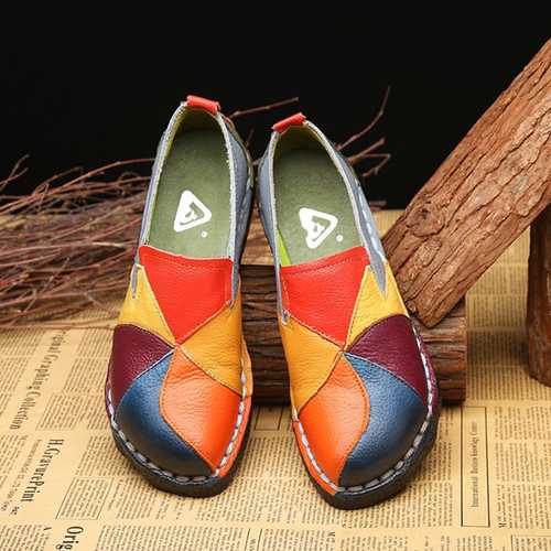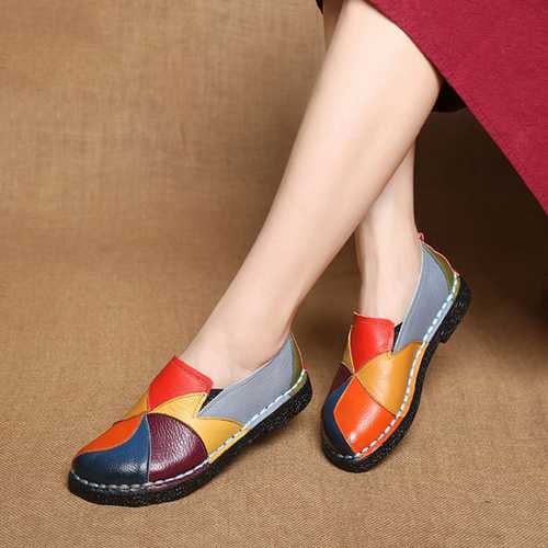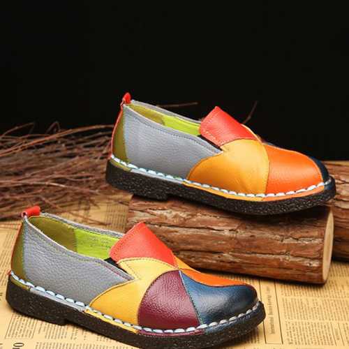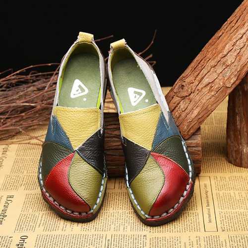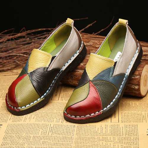 Brand: SOCOFYDescription:1. Shoe Type: Flats2. Gender: Women3. Season: Spring, Summer, Autumn4. Occasion: Casual5. Toe: Round Toe6. Closure Type: Slip-On7. Heel Height: 2cm8. Platform Height: 2cm9. Color: Yellow, GreenMaterial:Upper Material: Genuine LeatherOutsole Material: Rubber