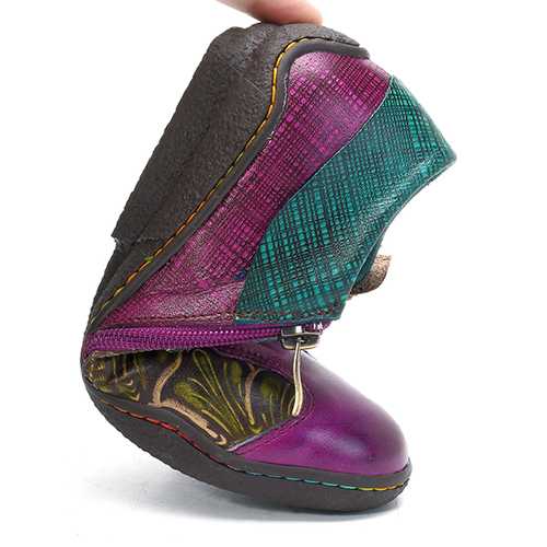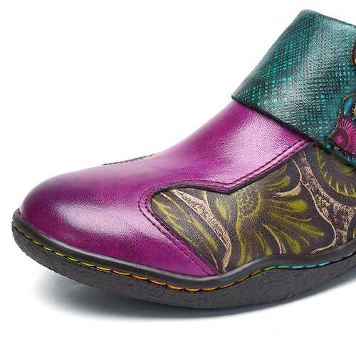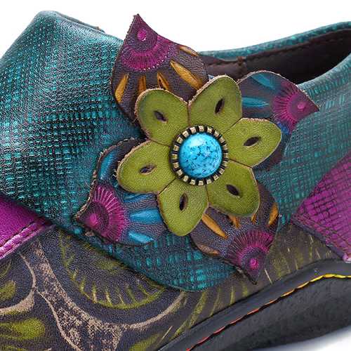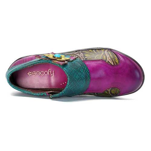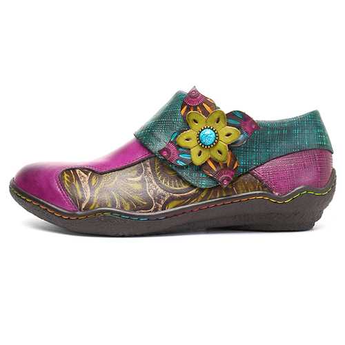 Brand: SOCOFYDescription:1. Shoe Type: Flats2. Gender: Women3. Season: Spring, Summer, Autumn4. Occasion: Casual5. Toe: Round Toe6. Closure Type: Hook-Loop7. Heel Height: 2.5cm8. Platform Height: 2cm9. Color: Claret, Blue, yellowMaterial:Upper Material: Genuine LeatherOutsole Material: Rubber