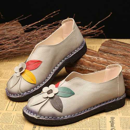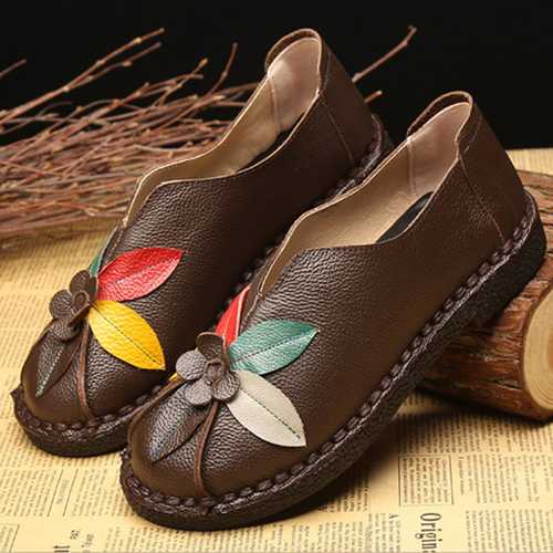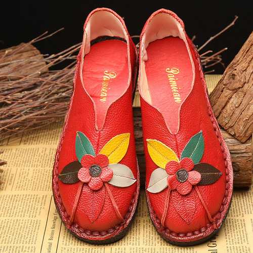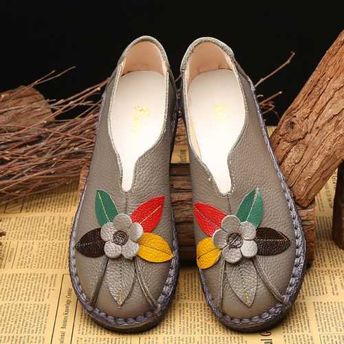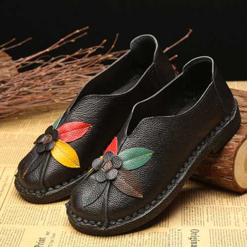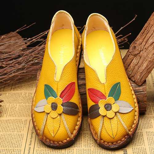 Brand: SOCOFYDescription:1. Shoe Type: Flats2. Gender: Women3. Season: Spring, Summer, Autumn4. Occasion: Casual5. Toe: Round Toe6. Closure Type: Slip-On7. Heel Height: 2cm8. Platform Height: 2cm9. Color: Black, Red, Yellow, Brown, Gray, Light GrayMaterial:Upper Material: Genuine LeatherOutsole Material: Rubber