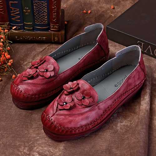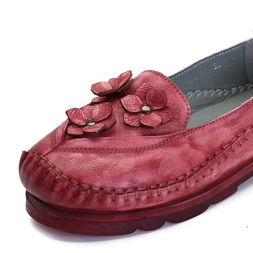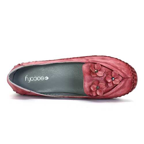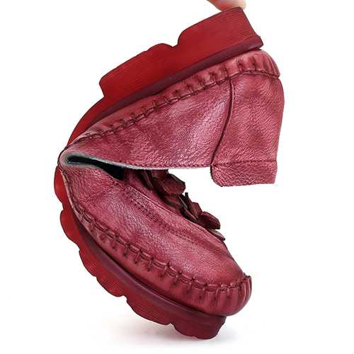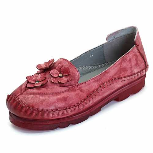 Brand: SOCOFYDescription:1. Shoe Type: Flats2. Gender: Women3. Season: Spring, Summer, Autumn4. Occasion: Casual5. Toe: Round Toe6. Closure Type: Slip-On7. Heel Height: 2cm8. Platform Height: 2cm9. Color: Khaki, Grey, Wine RedMaterial:Upper Material: Genuine LeatherOutsole Material: Rubber