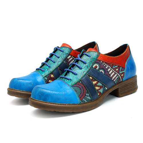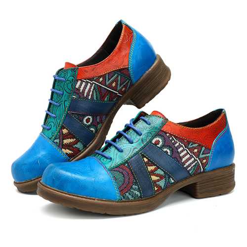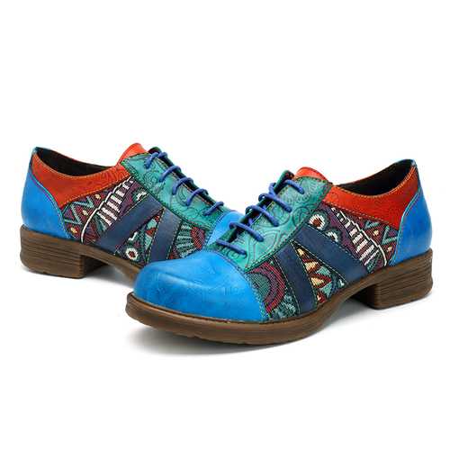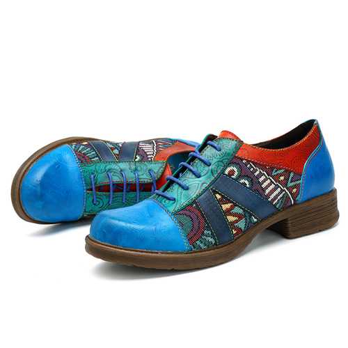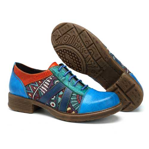 SOCOFY Bohemian Splicing Pattern Flats Leather Shoes