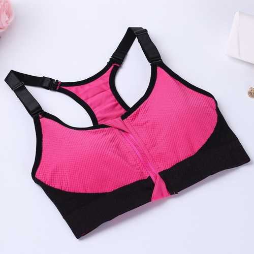 Front Zipper Shockproof Race Back Professional Training Padded Sports Bra