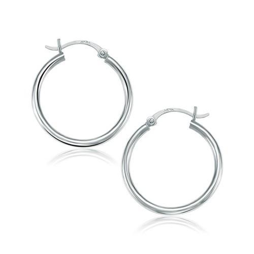 14k White Gold Polished Hoop Earrings (25 mm)