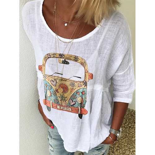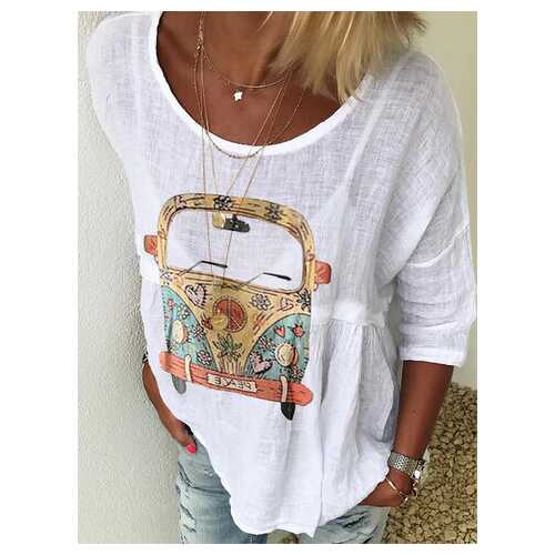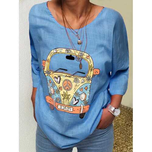 Bus Printed 3/4 Sleeve O-Neck Blouse