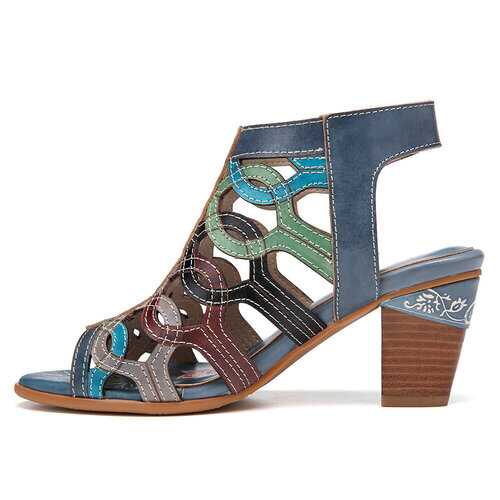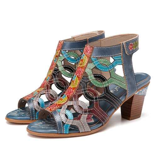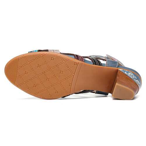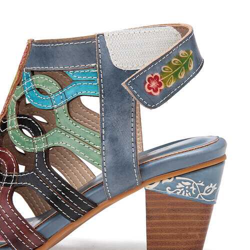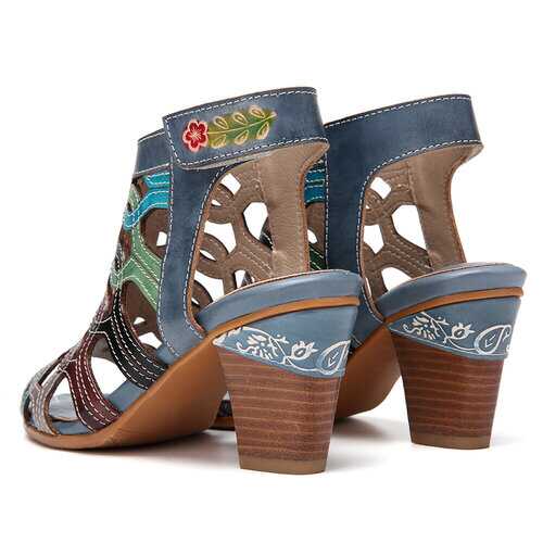 Brand: SOCOFY Shoe Type: Heeled SandalsHeel Height: 6.5cm/2.56inHeel Type: Mid HeelClosure Type: Hook-and-loopToe Style: Open ToeStrap Type: SlingbackSpecial Features: Strappy/StitchingPattern Style: FloralGender: FemaleOccasions: Casual, Office, HolidaySeason: SummerColor:Dark BlueSize (EU): 36-42 Material:Upper: LeatherLining: PUOutsole: Rubber Package included:1*pair of shoes (packing in a carton case) ▲KINDLY NOTICE: