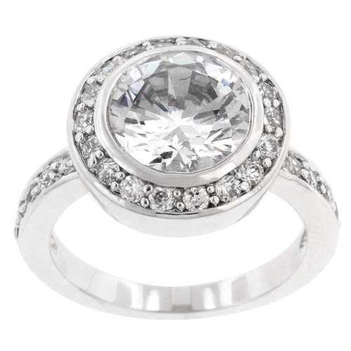 The Ritz is blinged out with clear cubic zirconia on its shoulders and on top. A three carat center stone is the main attraction and its accented by smaller cubic zirconia set on a silver tone. Genuine Rhodium Plating is achieved using an electroplating process that coats the item with...